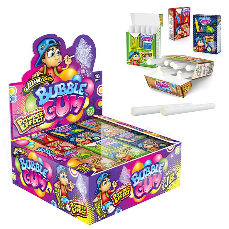 Morbidi e gustosi bubble a forma di bastoncino effetto magico al soffio gusto: tutti i frutti.