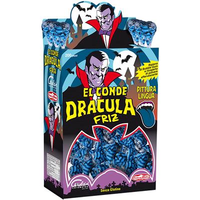 Lecca lecca dracula pittura lingua friz ripieno di bubble gum e ricoperto di polvere effervescente