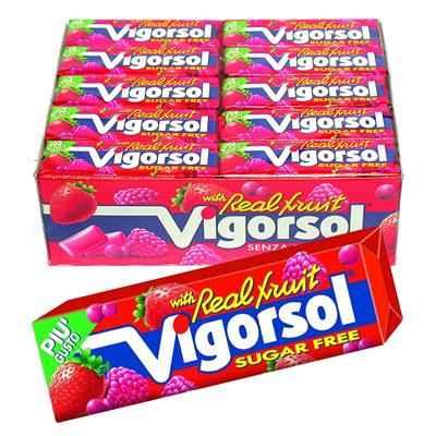Vigorsol real fruit sono chewingum realizzate con l'intento di far vivere un piacevole momento di dolcezza, ma con la freschezza dei frutti rossi.
