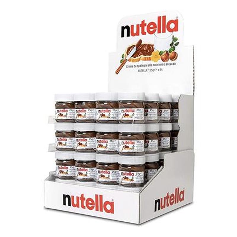 Nutella Mini Ferrero: la classica crema alle nocciole e cacao in comodi vasetti monodose. Ideale per colazioni, merende o da portare ovunque per un momento di dolcezza.
