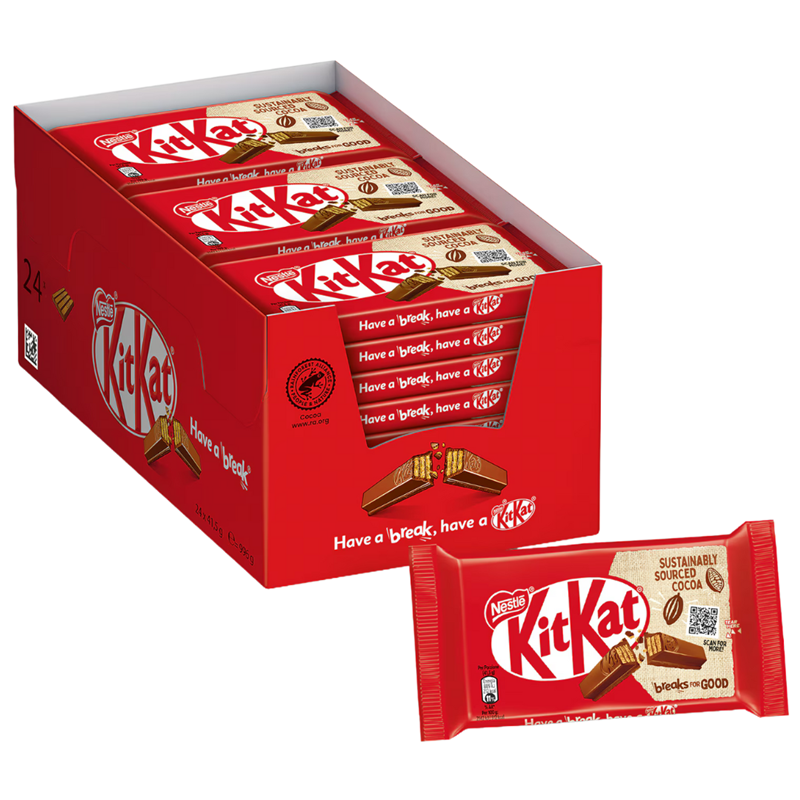 KitKat Classico Nestlé: croccanti strati di wafer avvolti da finissimo cioccolato al latte. Perfetto per una pausa dolce e leggera grazie al suo gusto equilibrato e inconfondibile.