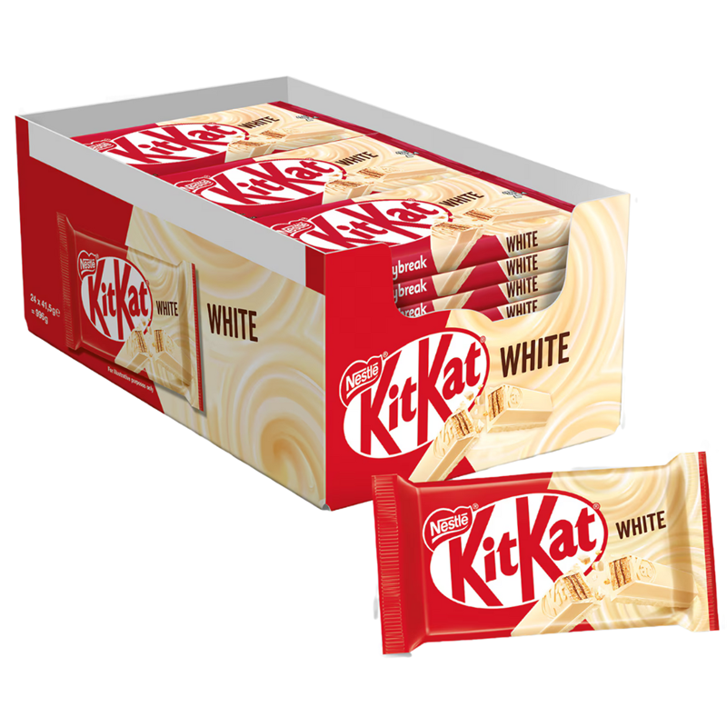 KitKat White Nestlé: croccante wafer a più strati ricoperto da delizioso cioccolato bianco. Un perfetto equilibrio di dolcezza e leggerezza per una pausa golosa e cremosa.