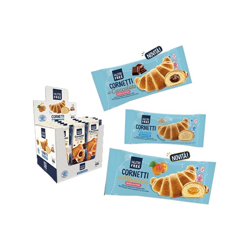 Cornetti Nutrifree assortiti senza glutine al gusto albicocca, classico e cioccolato