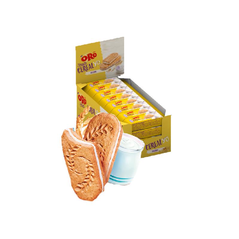 Biscotti Vitasnella Cereal Yo Original, con una cremosa farcitura allo yogurt racchiusa tra due biscotti ai cereali integrali.