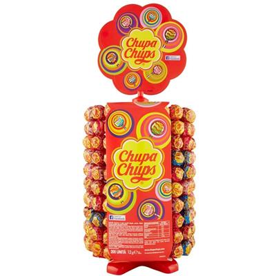 Ruota Chupa Chups The Best Off espositore da banco 200 pz. con lollipop Chupa Chups gusti assortiti fragola - arancia - ciliegia - lampone - vaniglia - cola - panna e fragola. L'iconica ruota Chupa Chups da cui scegliere il tuo Chupa preferito tra 200 lecca lecca e 7 gusti differenti. Colori, gusto e divertimento, dal 1958 Chupa Chups fa parte della vita di tutti i giorni. Gli intramontabili gusti Chupa Chups senza glutine con coloranti naturali ora con bastoncino stick in carta!