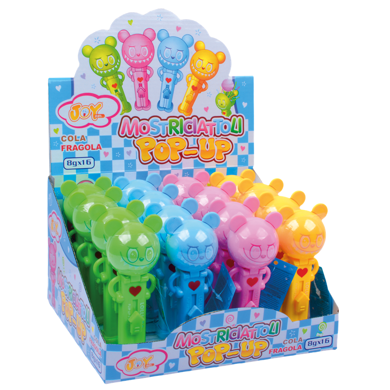 Morbido giocattolo antistress a forma di mostriciattoli con portachiavi di vari colori e caramelle al gusto tutti i frutti