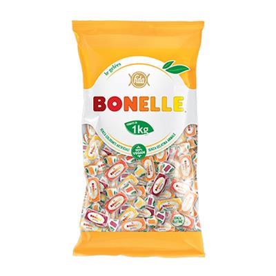 Caramella morbida rotonda gelée ai gusti di frutta, 100% vegan, senza coloranti artificiali.