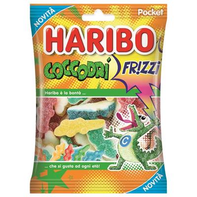 Gustosissime caramelle gommose frizzanti haribo, dalla forma di simpatici coccodrilli,