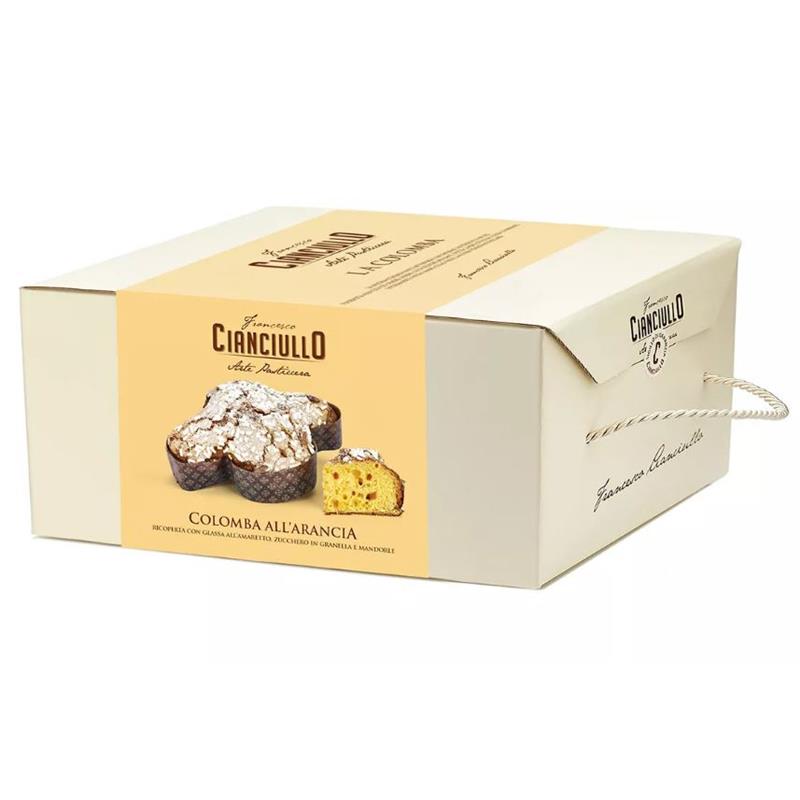 Dolce lievitato di Pasqua a forma di colomba. Nasce attraverso una naturale lievitazione di 48 ore, con Lievito Madre, burro belga, uova fresche di cat.A e morbidi cubetti di arancia. La glassa all’amaretto e mandorle completano il dolce.