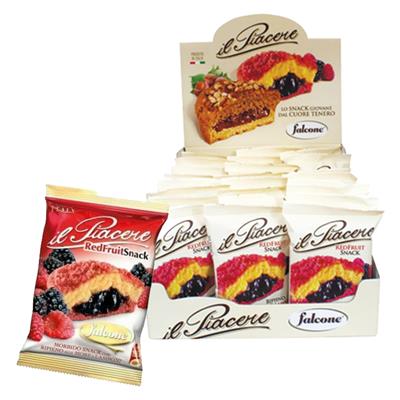 Un capolavoro di pasticceria arricchito con golose farciture, per un momento di puro Piacere!Snack “il Piacere” Red Fruit Snack (24x60g)