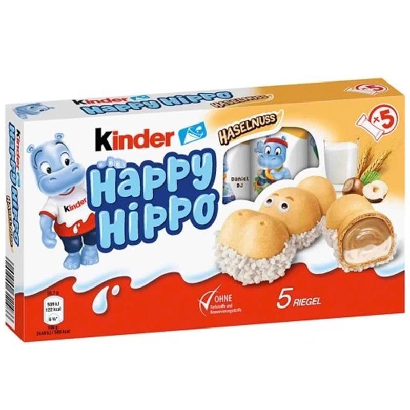 Kinder Happy Hippo Nocciola: wafer croccante a forma di ippopotamo con doppia crema al latte e nocciola. Unisce croccantezza e cremosità per una pausa dolce e divertente.