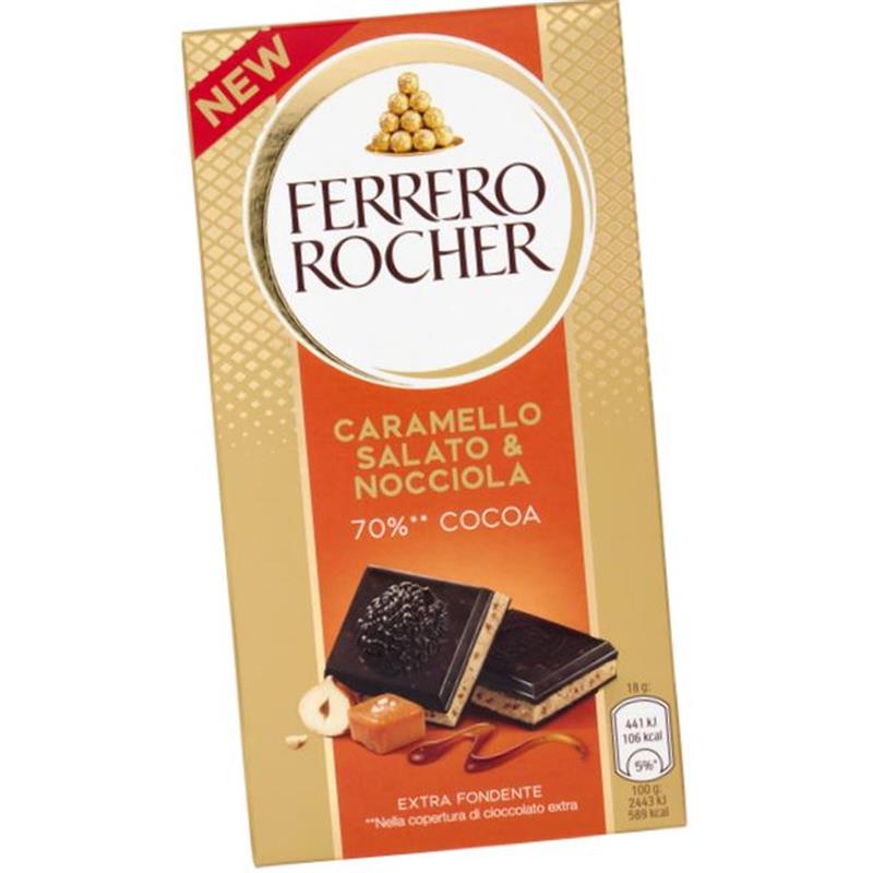 Finissima tavoletta di cioccolato Ferrero Rocher al gusto di cioccolato al caramello salato e nocciole tritate
