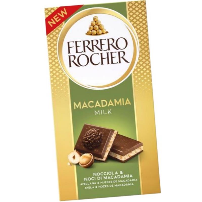 Finissima tavoletta di cioccolato Ferrero Rocher al gusto di cioccolato al latte con nocciole Macadamia