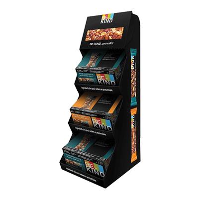 l'espositore Be-Kind contiene al suo interno 2 Be-Kind penaut butter dark e 1 Be-Kind cioccolato e frutta secca, per un totale di 36 pezzi