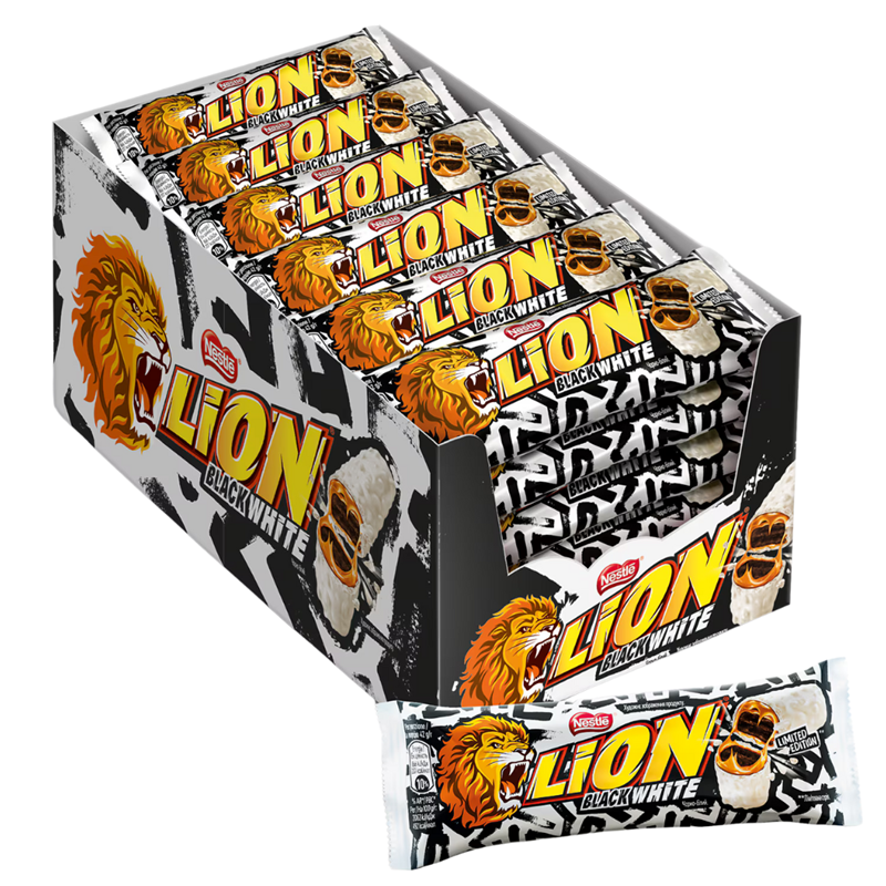 Nestlé LION BLACK and WHITE al Cioccolato Bianco Snack Wafer Croccante ripieno di Cacao e Caramello 40g