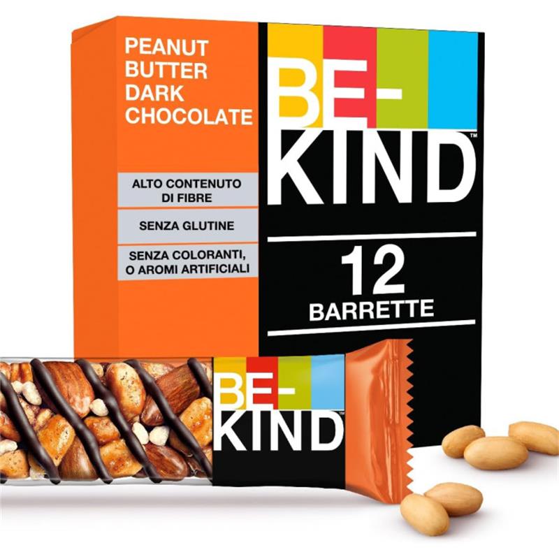 Le Be Kind Burro Arachidi Dark sono delle barrette snack al gusto di burro di arachidi, con il cioccolato fondente, per creare uno snack ricco di proteine, grassi sani e gusto intenso.