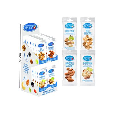 L'Expo Semplicemente Frutta è costituito dall'assortimento complento dei gusti energy mix, mandorle, noci e power mix, per un totale di 48 pezzi
